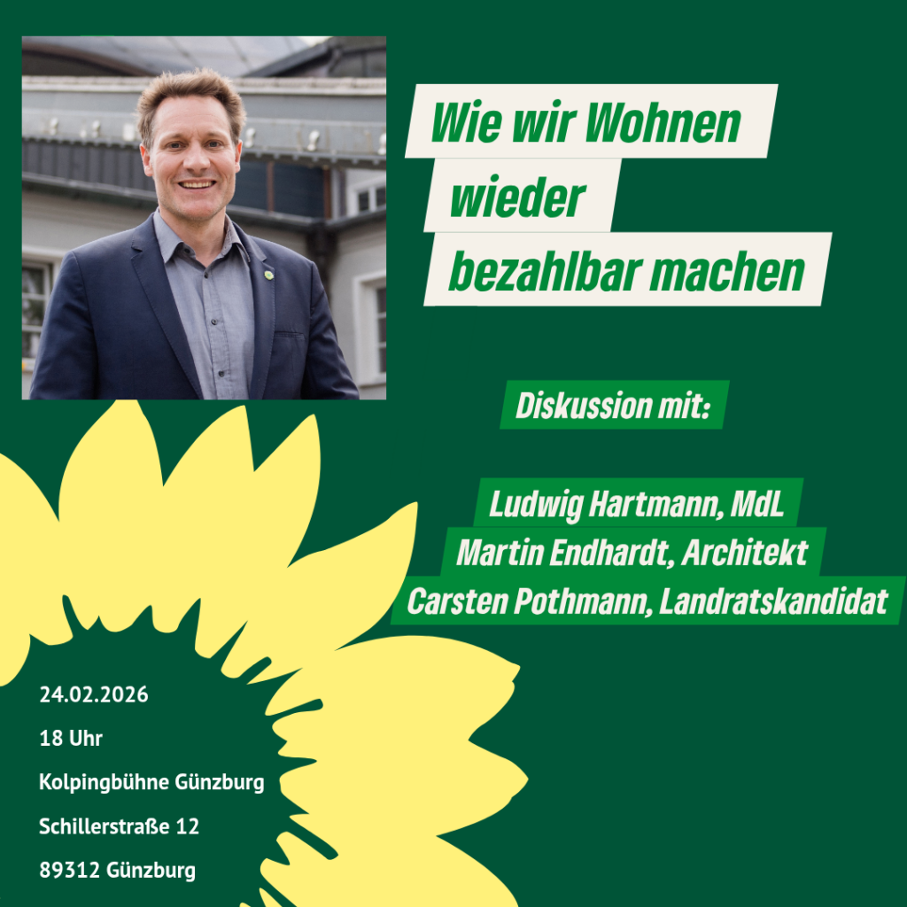 Nach Gesprächen zwischen Vorstand und Mitgliedern spricht der Ortsverband Günzburg von Bündnis 90/Die Grünen dem parteilosen Martin Endhardt seine Unterstützung bei der Kandidatur zur Oberbürgermeisterwahl 2026 aus.